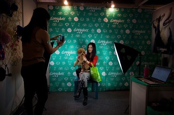 上海世博會(huì)展中心舉行的一場(chǎng)名狗展上,24歲的李燁(音譯)與自己的狗合影。