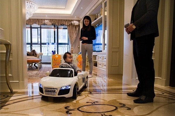 他們不約而同地選擇了上海——這個(gè)野心勃勃的、遠(yuǎn)離中國(guó)政治中心的國(guó)際化都市作為自己安居和投資之地。這些年輕人,或自己創(chuàng)業(yè),或從父輩手中繼承家族企業(yè)。他們工作努力,消費(fèi)亦很驚人。圖為房地產(chǎn)企業(yè)老總戴軍(音譯)在自家豪宅內(nèi)。